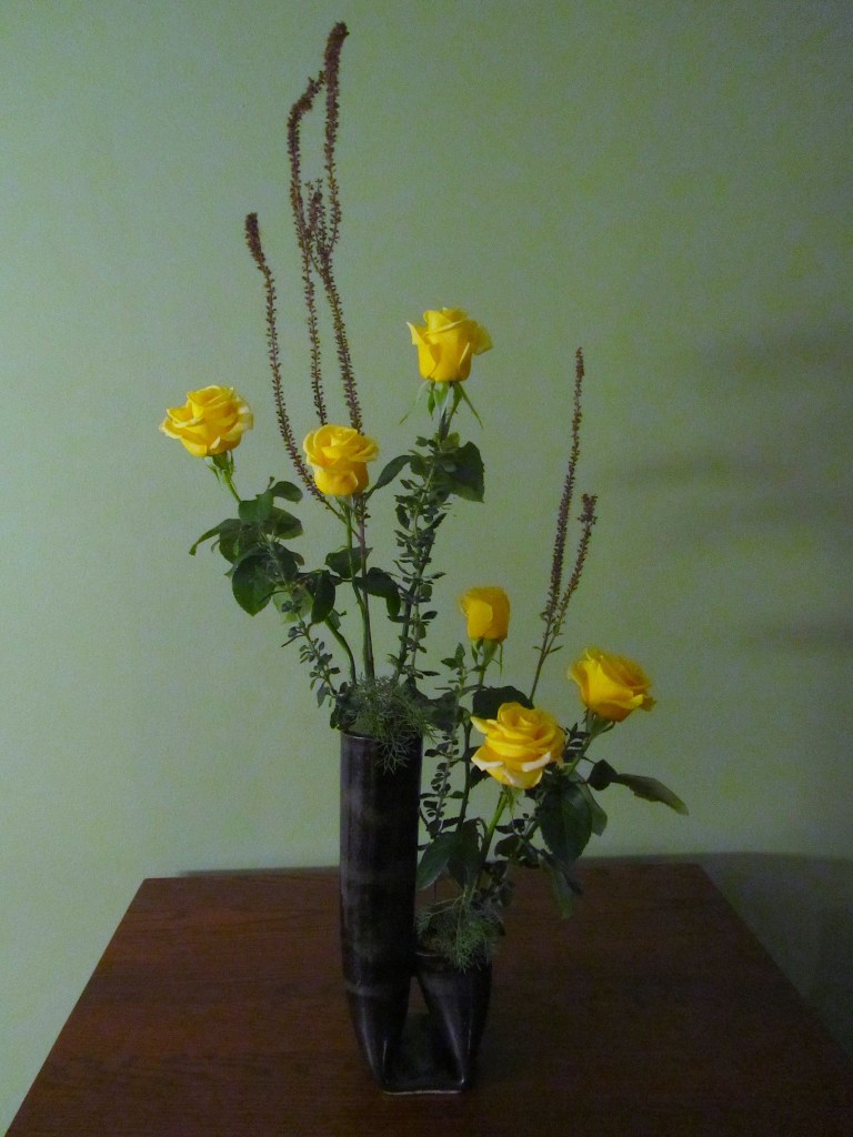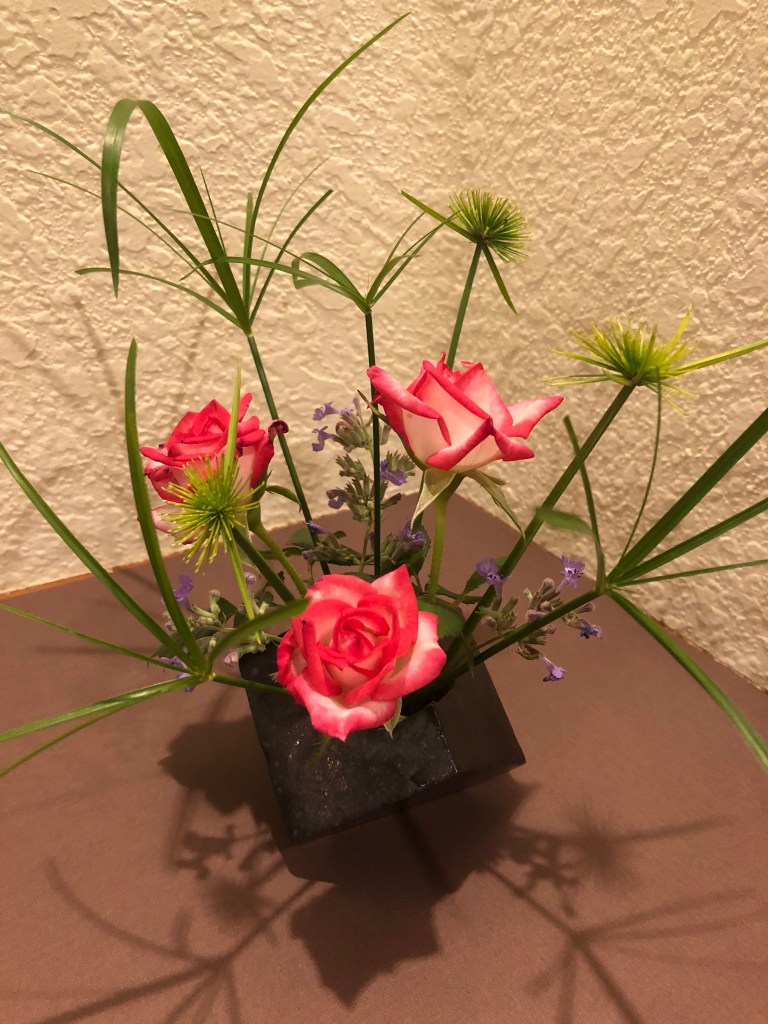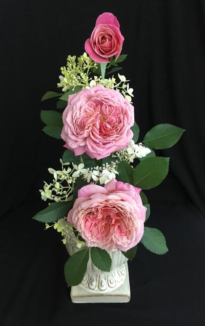Flower Designs are an additional way to enjoy ones roses. In a typical rose show, there is a theme around which various types of design are created. While the designs can feature a variety of floral material, the rose must be the dominate flower in the arrangement.