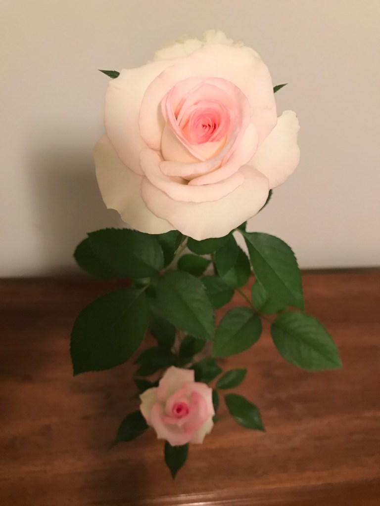 In addition to Horticulture Entries, rose shows often have a number of “Challenge Classes”, that provide the exhibitor an opportunity to display their roses in a different format. Our rose show included three challenges, including Rose in a Bowl, Rose in a Picture Frame, and Hi-Lo Challenge (two varieties, one large, one miniature or mini flora, similar in appearance). Challenge classes add a little extra interest in our show.